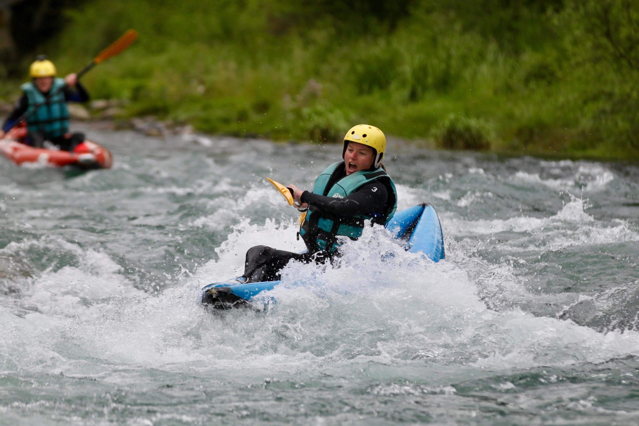 À mi-chemin entre le kayak et le bodyboard, cette activité assez confidentielle se pratique comme son cousin l’hydrospeed : allongé sur le ventre, tête en avant, pour une immersion totale dans les rapides.
